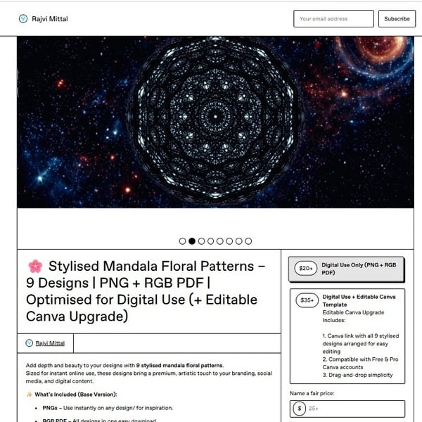 πͺ· Mandala Floral Patterns β 9 Designs | PNG + RGB PDF | Optimised for Digital Use (+ Editable Canva Upgrade)